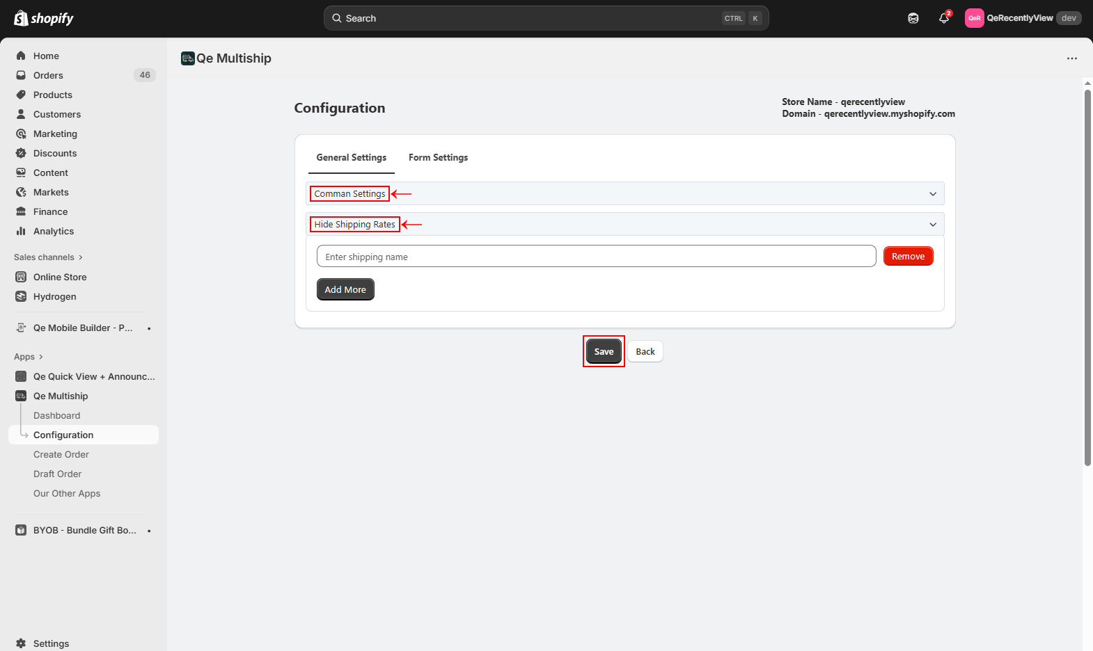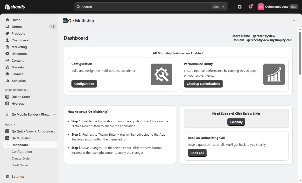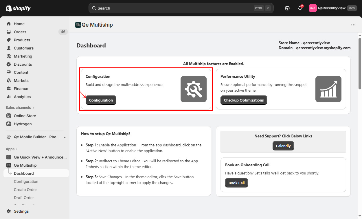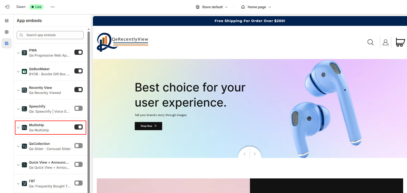 Important note: Option Appears Only When QeMultiship App is enabled from the App Embed section