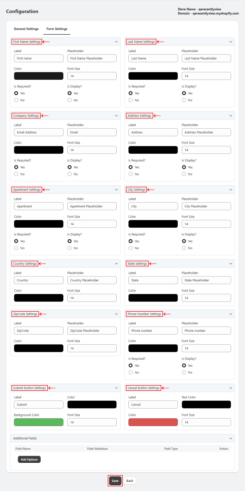 Here, you can customize:
