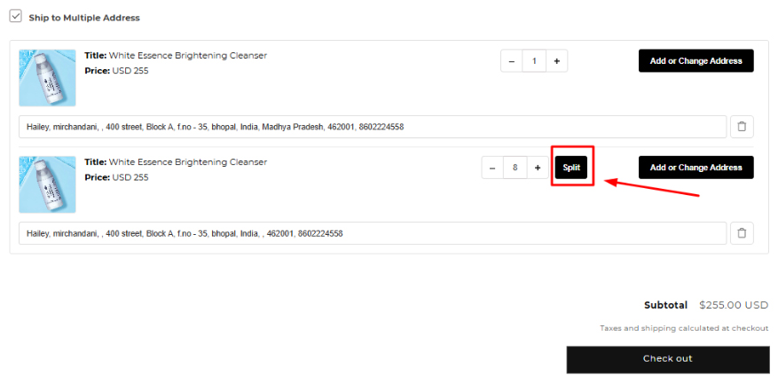 Learn how customers can split product quantities across different addresses without placing multiple orders.